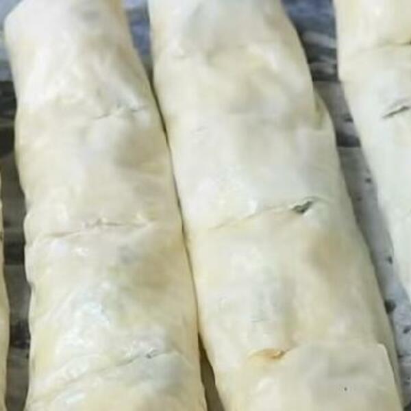 Koru prvu poprskati uljem, preko nje još dve pa na treću ubaciti 2-3 kašike šampinjona i rasporediti po kori. Saviti ivice i uviti u rolat.
