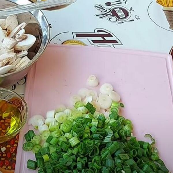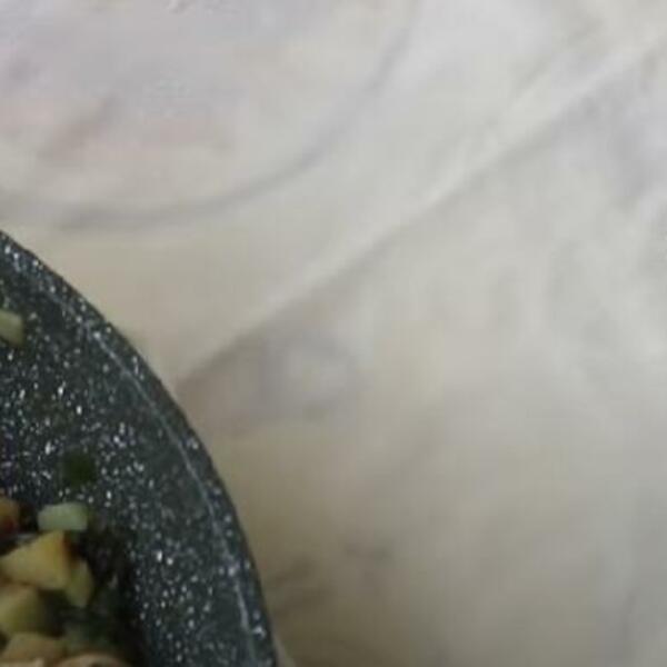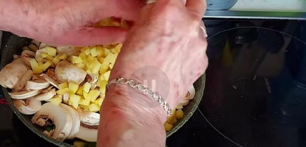 Na ulju prpržiti seckan luk pa dodati na listove oprane šampinjone i na sitne kockice krompir. Posoliti i dinstati oko 15 minuta. Dodati bibera, papriku i još začina po želji.