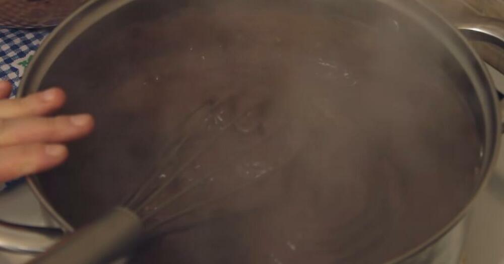 Skloniti sa vatre i dodati margarin pa mešati dok se skroz ne sjedine. U početku izgleda vodeno ali se lagano spajaju.