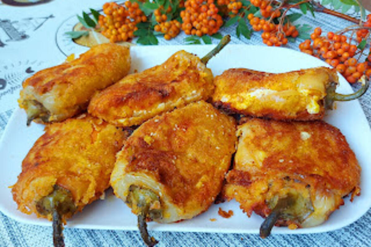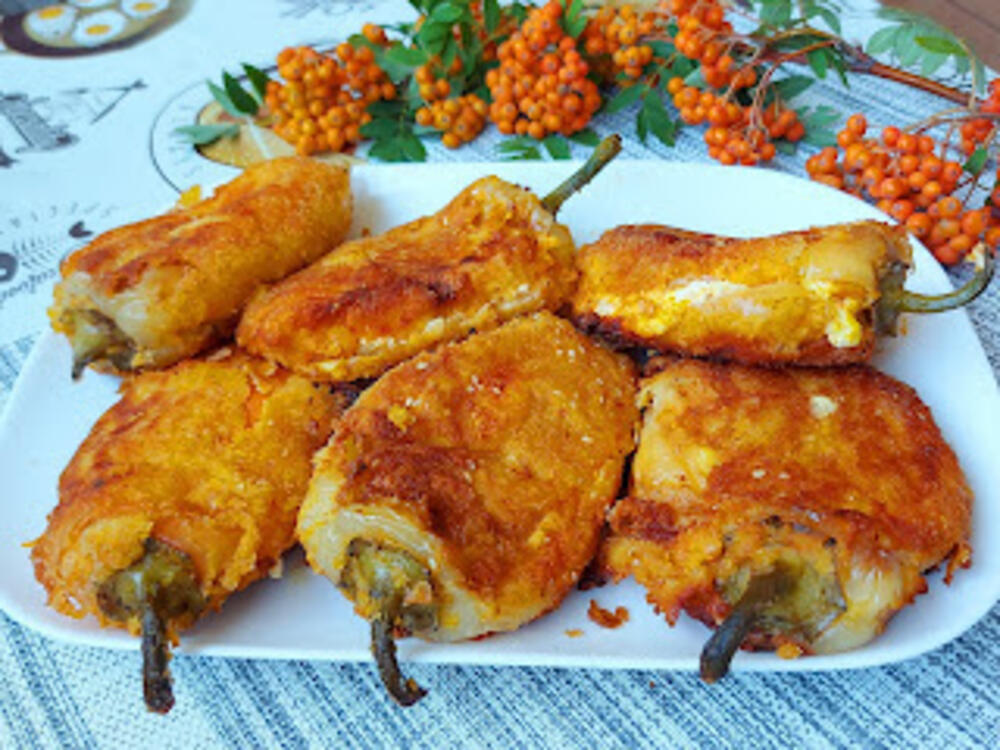 Izjednačiti sir pa puniti paprike.Uvaljati u brašno, jaja i prezle.