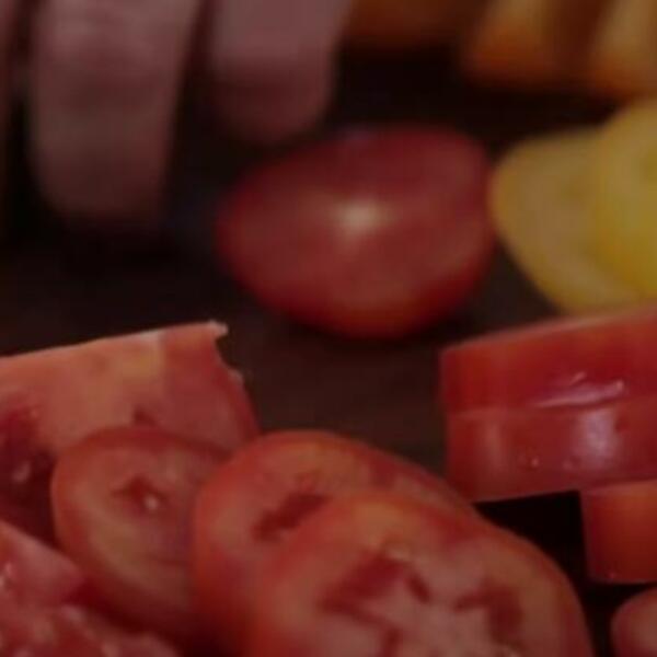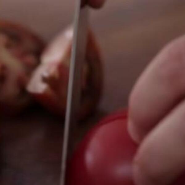 Za početak, on voli da izabere različite vrste paradajza i da ih iseče na različite načine - neke na četvrtine, neke na tanje a druge na deblje kriške. Soli ih "sa visine", kako kaže, da bi se ravnomernije začinila salata, s tim što ne koristi pribor za mešanje već lakim pokretima protresa činiju da izmeša sastojke.