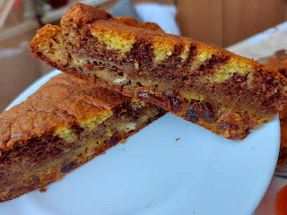 Umutiti jaja sa šećerom dodati brašno sa praškom za pecivo , dodati ulje, suvo groždje,koricu limuna i mleko i sve izjednačiti.