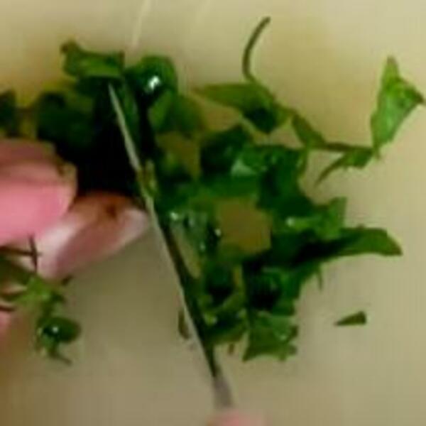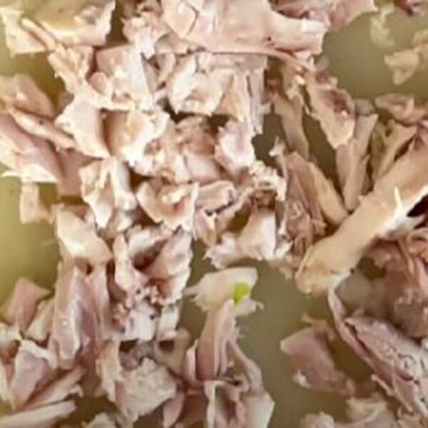 Meso očistite od kostiju, kožice i žilica pa isecite na kockice. Dodajte u čorbu meso i iseckani peršun.