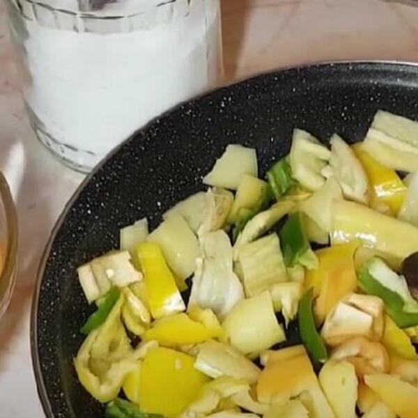 Papriku oprati, očistiti i iseći. Propržiti je na zagrejanom ulju, posoliti i usuti malo vode. Kad voda skroz uvri, dodati jaja, začiniti i mesati da se isprže.