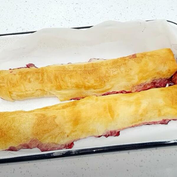 3. Pecite u zagrejanoj rerni na 180 stepeni oko 45 minuta ili dok savijača ne dobije zlatnu boju. Nakon pečenja ostavite da se ohladi, secite i služite.