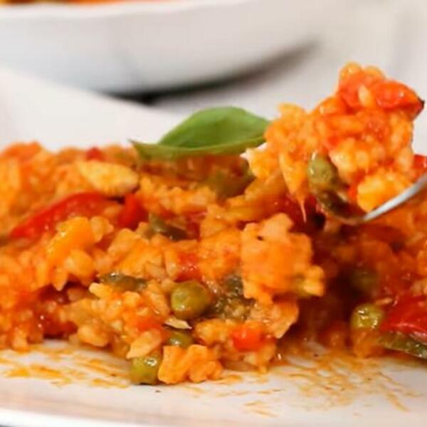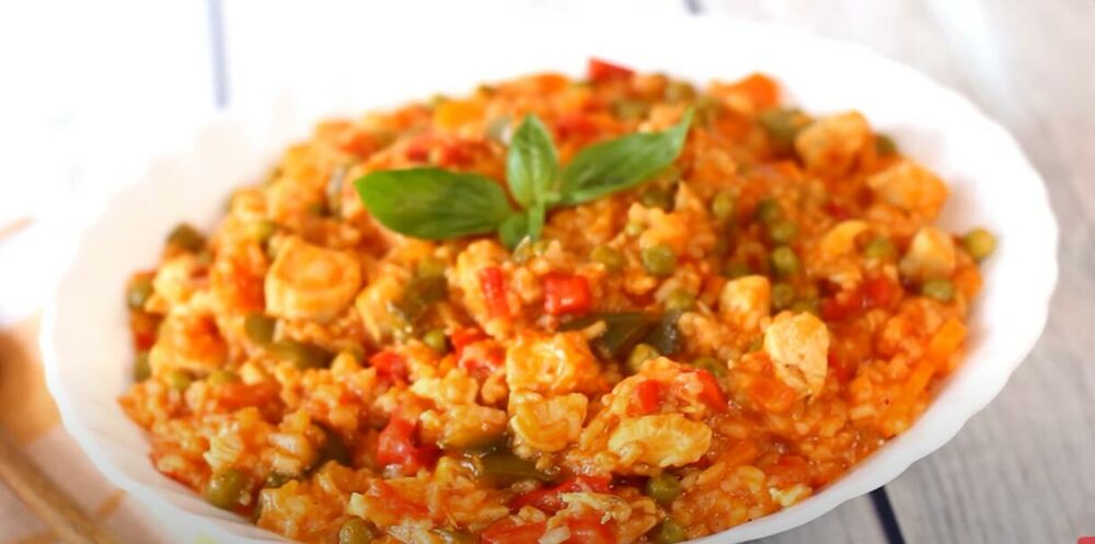 Kada je pirinač malo omekšao, začiniti još po ukusu, dodati iseckan peršun. Sve to preručiti u podmazanu vatrostalnu ili zemljanu posudu, pokriti i kratko zapeći u rerni. Otprilike je gotovo za najviše 20 minuta.