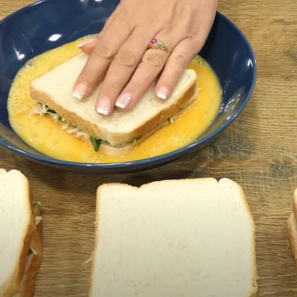 Dva jaja umutite i uvaljate u to sendviče i ispecite ih u tiganju.