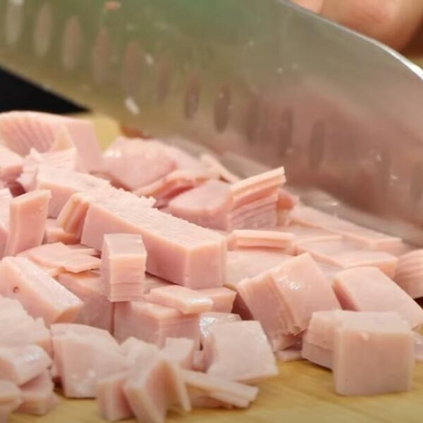 Rendani kačkavalj, seckanu šunku i peršun izmešajte u činiji. Promašejte i dodajte jedno jaje.