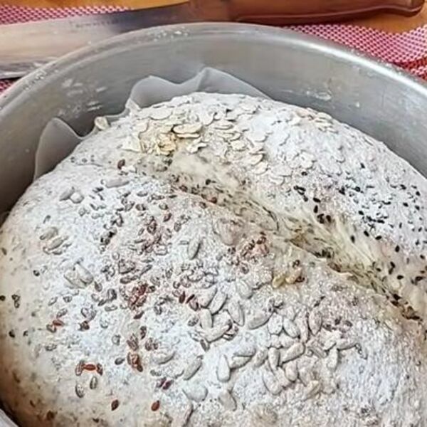 Umešeno testo prekrijte krpom ili streč-folijom i ostavite sat vremena da naraste. Potom ga prebacite na pobrašnjenu radnu površinu, podelite ga na dva jednaka dela i formirajte vekne.