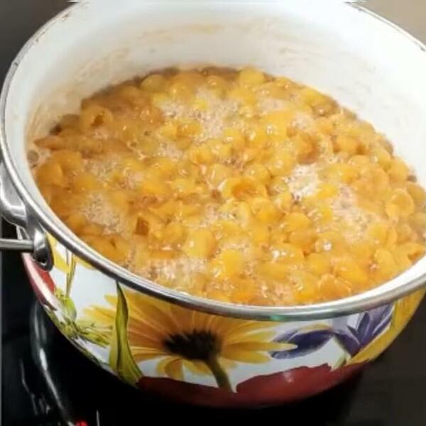 Temperatura grejnog tela i dalje treba da bude jaka. Slatko je gotovo kada sirup sipan iz kašike, ne teče u jednom mlazu već u prekidima, tj. u teškim kapima. Tada openite i pokrijte sa čistom kuhinjskom krpom. Ostavite da stoji 12 sata. Pripremite čiste, suve teglice sipajte slatko u njih pazeći da u svakoj bude dovoljno plodova i safta.
