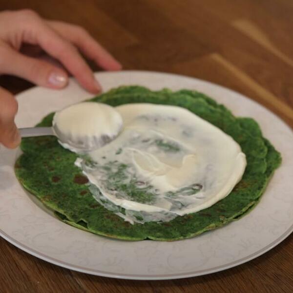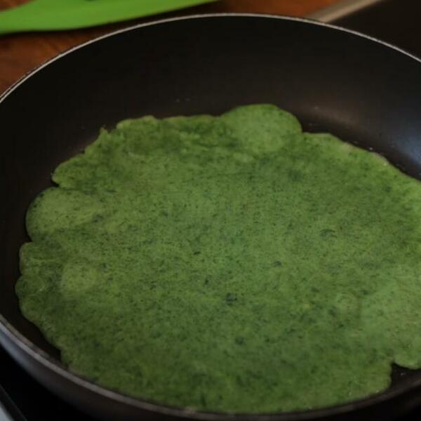 Oprati listove spanaća, odstraniti drškice. U blender staviti sve sastojke zajedno, potrebno je da dobijemo finu homogenu smesu kao za palačinke. Potom palačinke peći standardno, na malo ulja u tiganju.