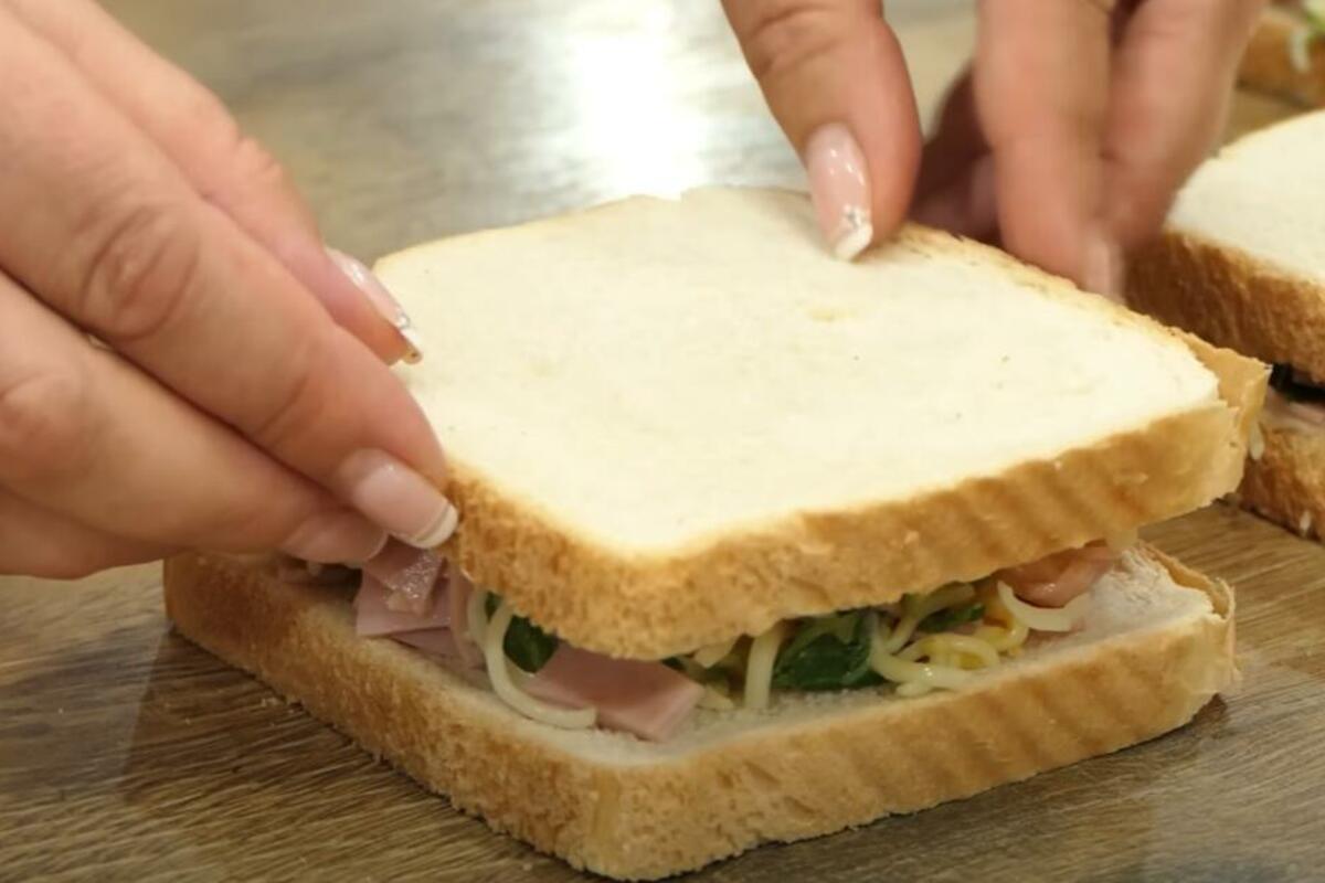 Kada napravite željeni sendvič tek tada hleb umočiti u jaja sa malo mleka i soli i pržiti.