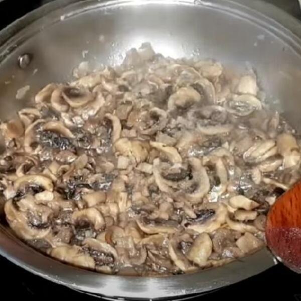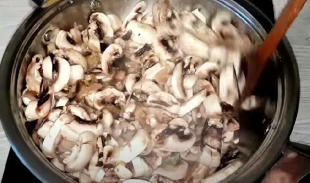 U tiganj u koji ste stavili ka[iku masti stavite luk i dinstajte dok se ne istopi. Dodajte seckane pečurke i pržite. U međuvremenu slaninu i šunku iseckajte na sitno. Listove pite poređajte u pleh, pospite dinstanim pečurkama, prezlom , slaninom, salamom i na kraju sirom, pa urolajte listove.