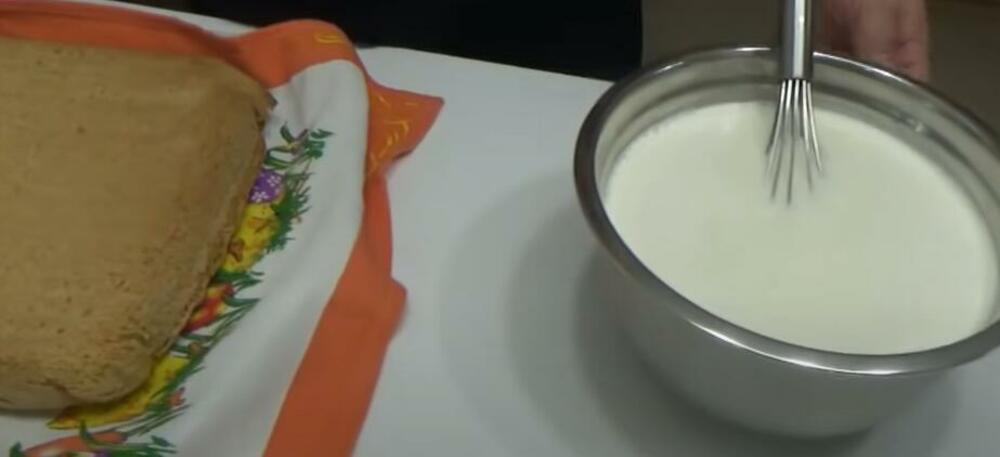 Pečen kolač izvaditi sa papirom iz pleha pa ga okrenuti naopako i izbockati viljuškom. Pomešati obično mleko sa slatkom pavlakom i polako prelivati vreo kolač. Videćete kako ekspresno upija. Krenite od ivica prema sredini, nemojte sipati sve na jedno mesto.