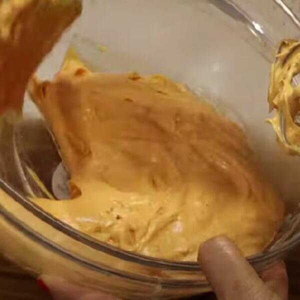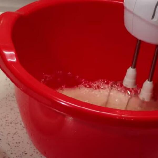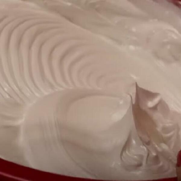 Belanca mutiti dok ne postanu penasta, pa dodati šećer i mutiti dok se ne dobije čvrst i gust šam a kristali šećera skoro nestanu. Na papiru za pečenje nacrtati krug prečnika 20 cm.