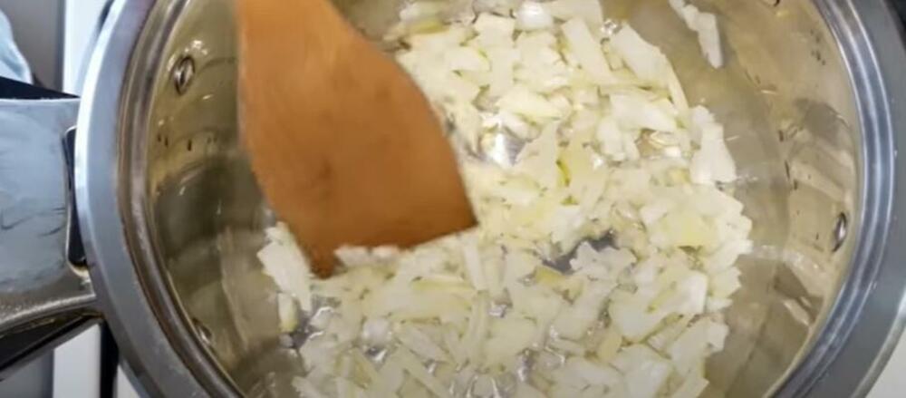 Sitno iseckajte luk, prziluk, šargarepu i celer i ostavite da se dinsta na blagoj temperaturi 15 minuta. U isto vreme ubacite boraniju u ključalu vodu, kuvajte isto 15 minuta. Nakon toga proceđenu boraniju dodajte dodajte povrću i nastavite da dinstate još deset minuta.