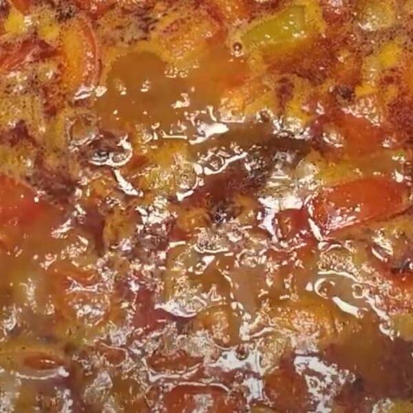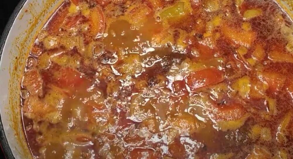 Kada je kobasica pustila sok i lepo zamirisala, naliti vode (od oka) i sipati testo za taranu. Začiniti i dodati alevu papriku. Kuvati otprilike jedno pola sata, dok krompir nije skuvan i testo lepo nabubri.