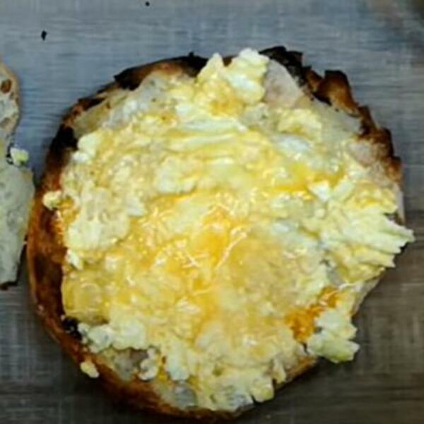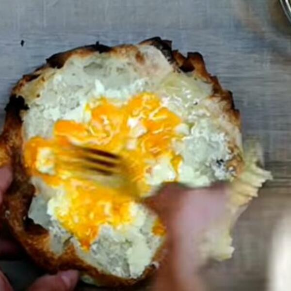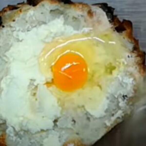 Jesti isklјučivo golim rukama, bez escajga! Lagano kidati komadiće poklopca i nežnim pokretima natapati u pretop i zapečeno jaje i kajmak. Kada ste završili sa poklopcem, isti postupak primeniti na lepinju.