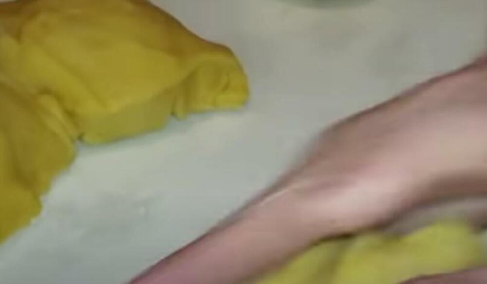 Pošto je testo odstajalo, podelite ga na četiri dela, kao i fil.