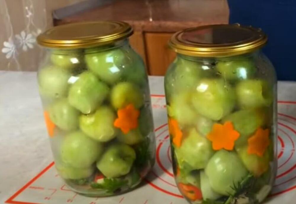 Priprema: U sterilisanu teglu ubacite krupnije sečen beli luk, par gračinca peršuna i mirođije, kao i biber. Isecite 2 koluta ljute papričice i dodajte u teglu. Zatim unutra ređate zeleni paradajz dok ne napunite teglu. Paradajz prethodno operite i isecite ako ima neki truli deo. Dok ređate paradajz ubacite i par komada šargarepe isečene na kolutove.