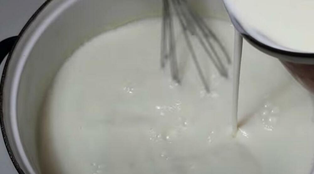 Kada se mleko blago prohladi(teško je objasniti toplotu koju mleko teba da ima),ali recimo, kao mleko koje biste vruće pili,znači ne valja da bude vrelo, u to dodati razblaženu pavlaku i lepo izmešati par minuta.