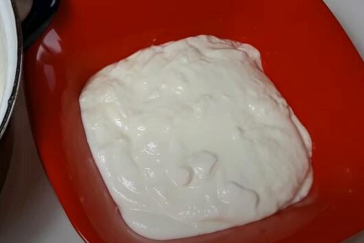 Mleko skuvati, ostaviti da se prohladi,odmah odvojiti oko 1 dl mleka za dodavanje u kiselu pavlaku.Ostaviti sa strane jer manja količina će se pre prohladiti.Kiselu pavlaku sipati u sud i postepeno joj dodavati prohlađeno mleko i sve vreme mešati da bi se lapo rastvorila i bila bez grudvica.