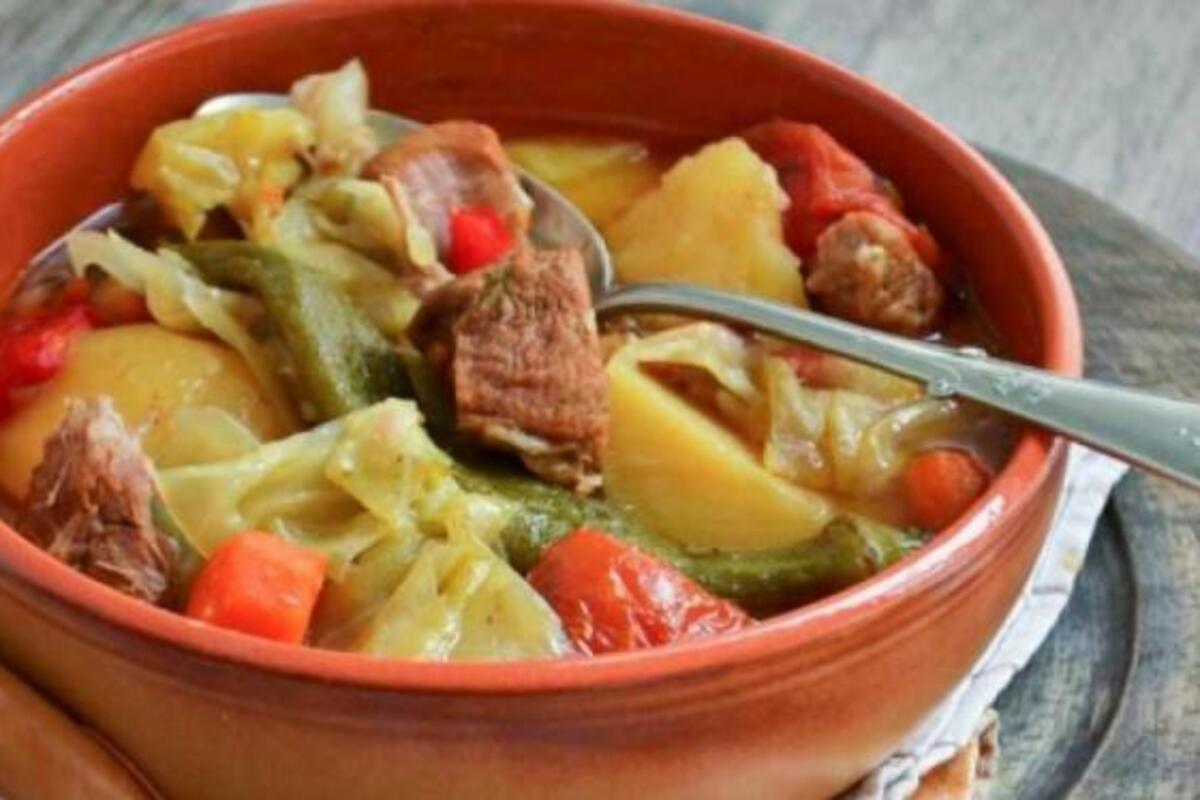 Glavicu svežeg kupusa nasecite na velike kriške. Juneću potrbušinu narežite na krupne kocke i dinstajte na vrlo malo ulja 20-ak minuta, a zatim meso stavite u prikladan lonac. Na meso složite kupus, na njega na kriške narezanu glavicu crvenog luka, šargarepu narezanu, 2 veće paprike iseckane na kocke, 2 manja paradajza sameljite u njega dodajte malo seckanog svezeg bosiljka, i prelite preko, grubo naseckajte vezu peršuna pa dodajte so, biber, lovor i malo ulja. Dolijte vodu da pokrije sastojke i lagano kuvajte dva sata. Poslužite uz domaći sir