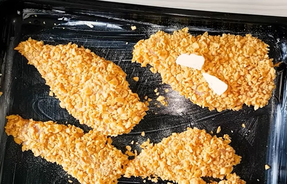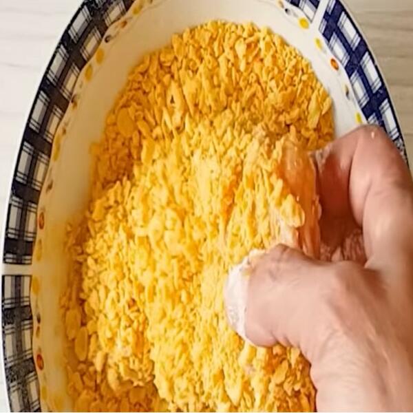 Sve što treba da uradite jeste da izblendate kukuruzne pahuljice, suvi začin i biber. Pripremite meso ili povrće koje ćete prvo uvaljati u umućena jaja pa u mleveni kornfleks.