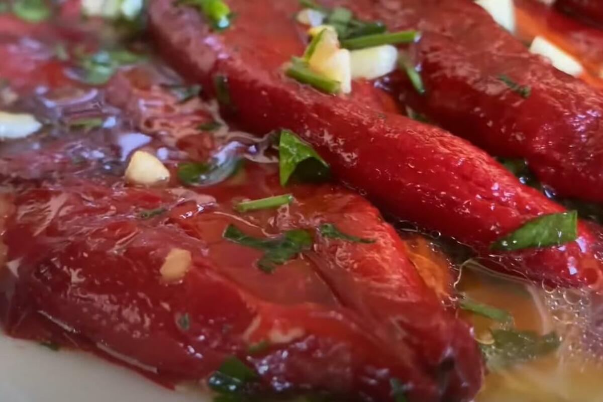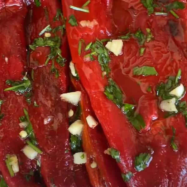 Beli luk sitno naseckati, kao i peršunovo lišće, preliti sirćetom i uljem i dodati so. Sve lepo izmešati. Paprike oljuštiti i iseći drške-peteljke, staviti u rešetkastu posudu da se ocede. Pripremiti posudu i poredjati red paprika, preliti poliovinom pripremljenog preliva. Poređati drugi sloj paprika i preliti ostatkom preliva. Ostaviti malo da odstoje i upiju preliv, pa poslužiti.