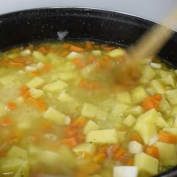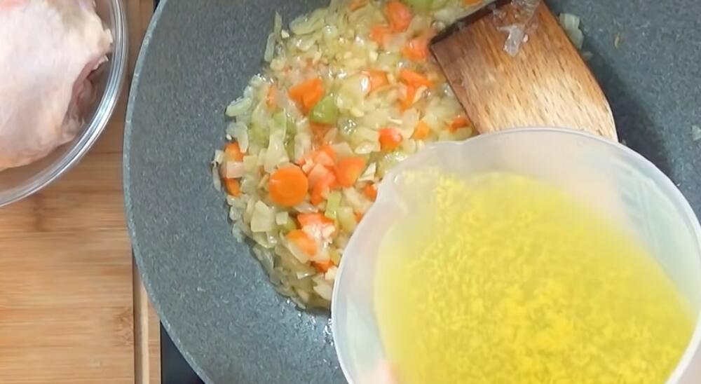 Piletinu iseckajte na kockice, a šargarepu na kolutove. U šerpu nalijte toplu vodu, pa stavite meso i šargarepu da se kuvaju.