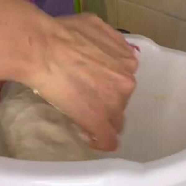 Pomešajte vodu i mleko i ugrejte zajedno. Kvasac izmrvite, dodajte šećer, kašiku brašna, i preko toga sipajte vodu i mleko. Izmešajte i ostavite par minuta da se kvasac aktivira, a zatim dodajte so i ulje i postepeno dodajte brašno dok ne zamesite testo (kad pod rukom osetite da je testo umešeno, da se vise ne lepi za ruku, to je to).