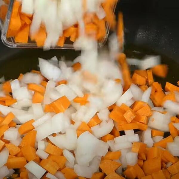 Luk i šargarepu propržiti na ulju, dodati sitni seckano belo meso pa sve zajedno propržiti. Naliti jednu čašu vode i dodati pirinač, začin, so, biber. Kuvati oko desetak minuta dok se pirinač ne skuva. Po potrebi dodavati vodu.