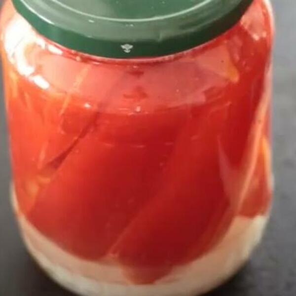 Priprema:Očistite ljute paprike i ispecite ih u rerni ili na plotni.Dok su još vruće poređajte ih u tegle koje ste prethodno sterilisali, dodajući čenove belog luka koje ste blago nagnječili nožem, krugove šargarepe, parčiće celera, šećer, so, biber i med po dve kašike. Dopunite do gore sirćetom. Zatvorite poklopcima.