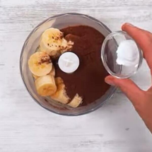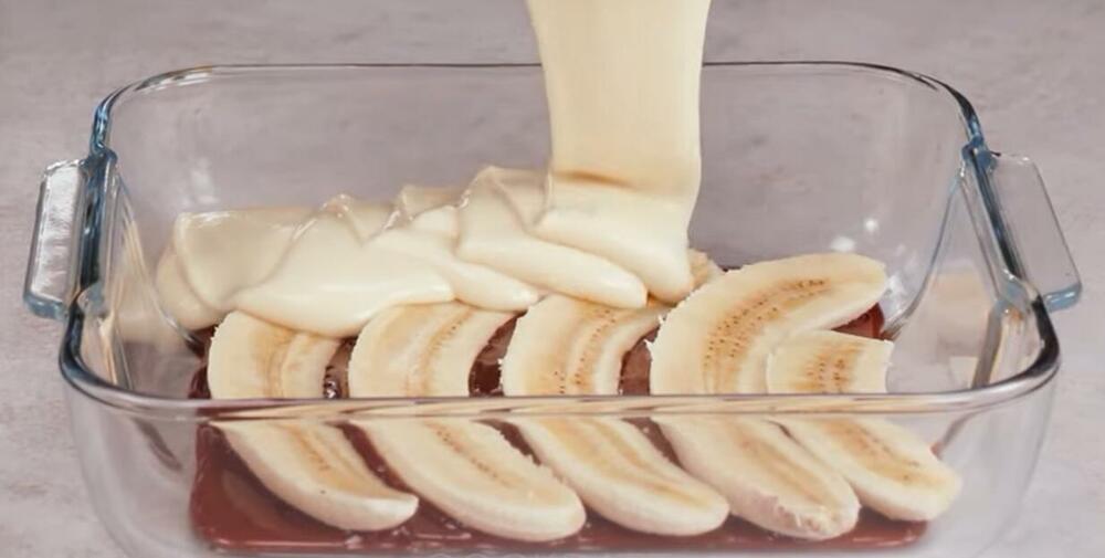 Banane malo iseckajte i stavite u secko ili blender zajedno sa jajima, kako prahom i praškom za pecivo. Blendajte dok se smesa ne ujednači. Zatim sipajte u neku posudu i ubacite u mikrotalasnu na 8 minuta. Pomešajte mleko, čokoladu i puter i otopite u mikrotalasnoj. Prelijte preko kolača. Stavite u frižider na 15 minuta pre nego isečete.