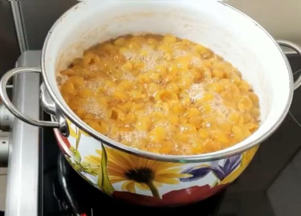 Ugrejte slatko na pari ili u mikrotalasnoj i pustite da se šećer istopi, a zatim ga prebacite u šerpu i dodajte malo tople vode, pa ga stavite da proključa na tihoj vatri, uz neprestano mešanje.