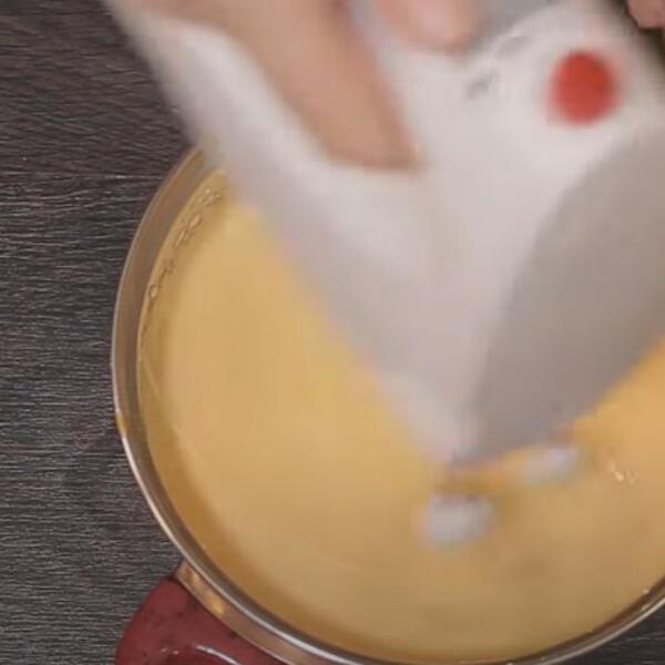 Umutite žumanca sa šećerom dok ne postanu penasta i kuvajte ih na pari. Zatim dodajte pola šoljice vode i čokoladu, pa kuvajte, neprestano mešajući (možete i mikserom), dok se ne otopi i sjedine sastojci. Pazite da ne prekuvate fil jer ne sme da bude previše čvrst. Umutite puter i dodajte u prohlađeni fil, pa sjedinite mikserom. Kore presecite da dobijete 4 komada i svaku koru nafilujte. Poslednju koru celu nafilujte da pokrijte sve stranice.