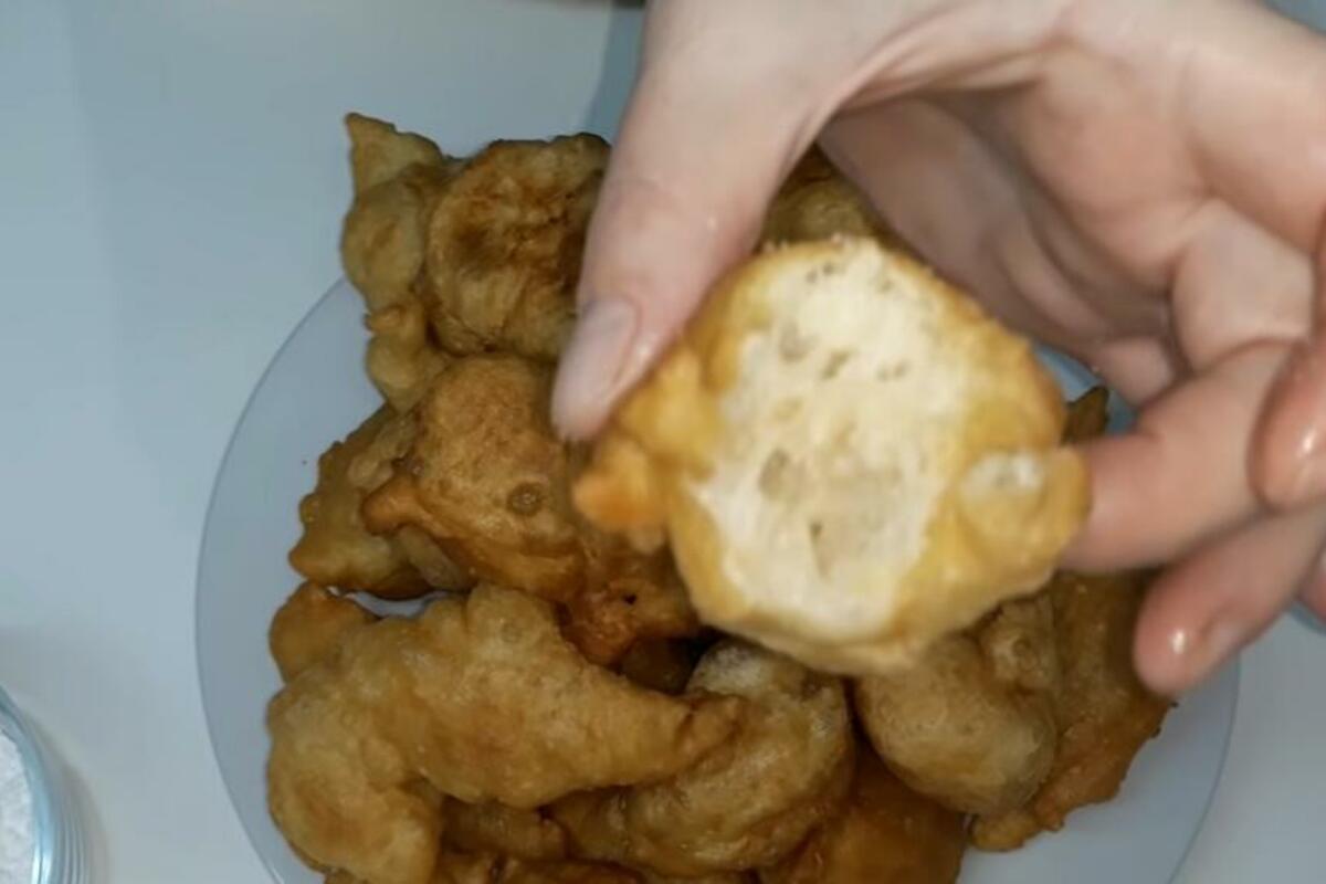 4. Kutlačom zahvatite testo i izručite ga na zagrejano ulje i što tanje rastanjite uštipak kašikom. Što su tanji, uštipci su bolji, pa ne zahvatajte puno smese. Pržite svaki uštipak po nekoliko minuta s a jedne i druge strane dok ne dobije rumenu boju. Nakon prvog uštipka smanjite temperaturu da ne bi izgoreli. Uštipci treba da dobiju lepu zlatnu boju. Uštipke stavljajte na papirnati ubrus da se ocedi višak masnoće. Možete praviti i veće u većem tiganju, prema želji. Služite uz šta god želite.