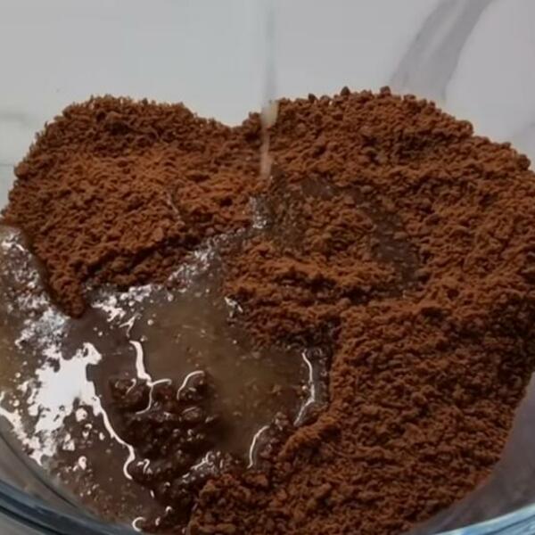 Pek papirom obložite vatrostalnu posudu, pa prelijte preko njega smesu, koju treba ravnomerno da rasporedite. Tako ćete napraviti podlogu, odnosno čvrsti deo kolača.