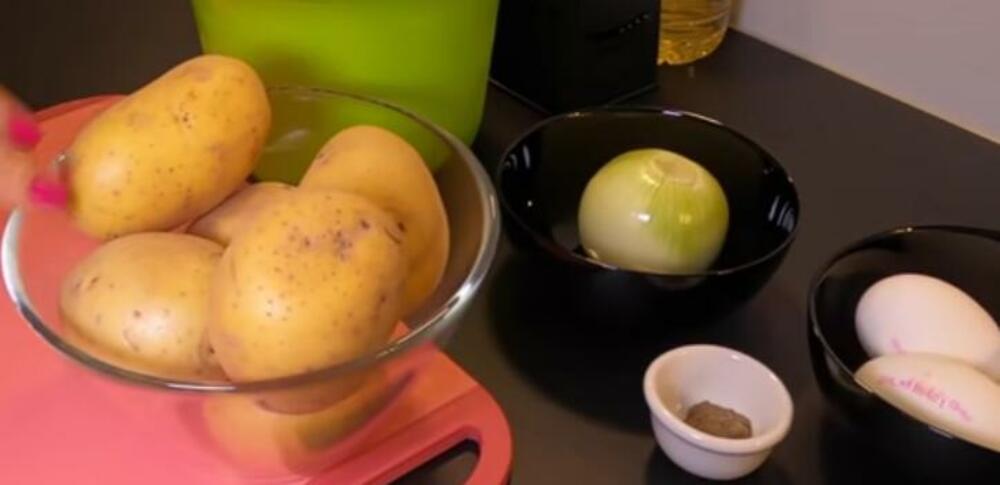Krompir oljuštiti i narendati na krupnu stranu rendea, pa ga sjediniti sa brašnom, uljem, jajetom, sitno seckanim crnim lukom i začinima po ukusu. Dobro izmešati da bi se dobila ujednačena masa.