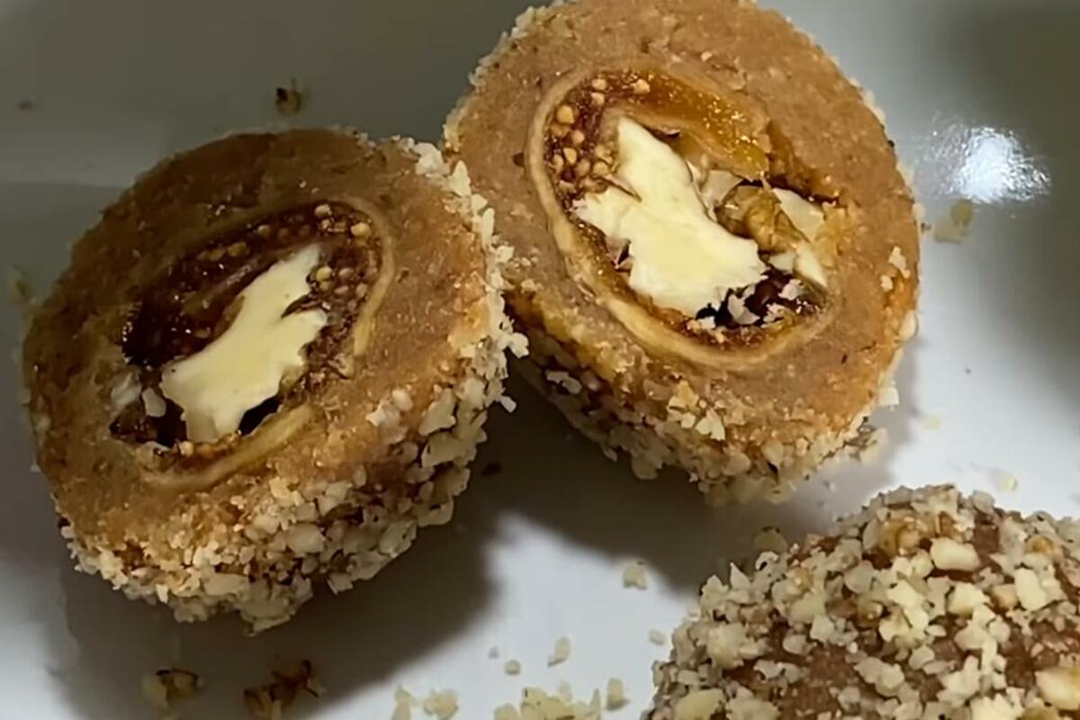 Na svaku smokvu stavimo malo hladne smese ( od oraha i keksa ). Stavite svuda po smokvi malo te smese, onako odprilike i sve zarolate u kuglice.