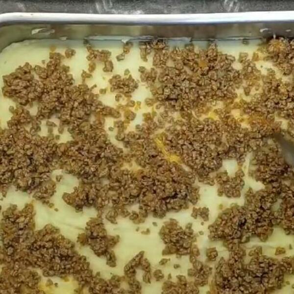 Brašno se przi dok ne dobije zlatnu boju, dodaje se lagano buljon i nakon toga mleko i so, sve se dobro promeša, da bi se dobila gusta homogena smesa. Sa njom se preliva musaka i peče dok ne porumeni.
