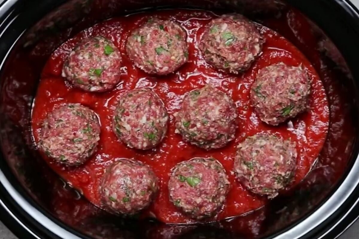 Mozzarella-Stuffed Slow Cooker Meatballs