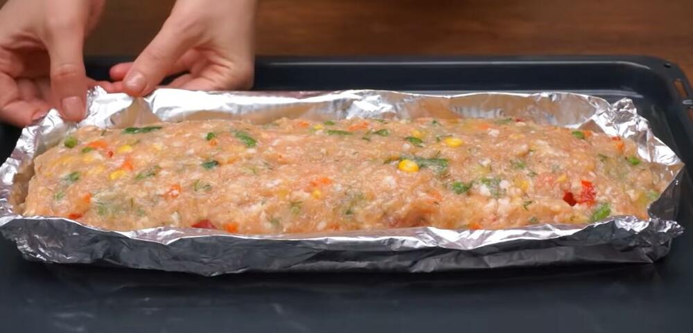 Posolite, pobiberite i dodajte seckanu mirođiju. Sve dobro sjedinite, pa prebacite na alu foliju koju ste premazali uljem.