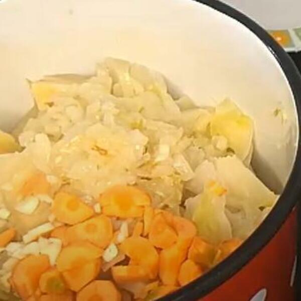 Odozgo prelijte sokom od kiselog kupusa i vodom, tako da se prekrije kupus.