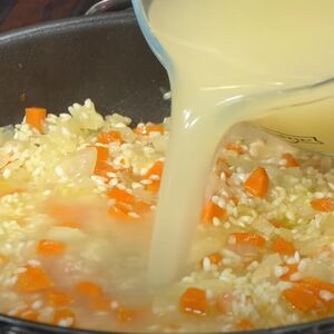 1 litar mleka 10 kašika griza 5 kašika šećera 1 vanilin šećer 5 kašika kokosa 5 kašika Kraš ekspresa 1 kašika margarina za posipanje kokosa