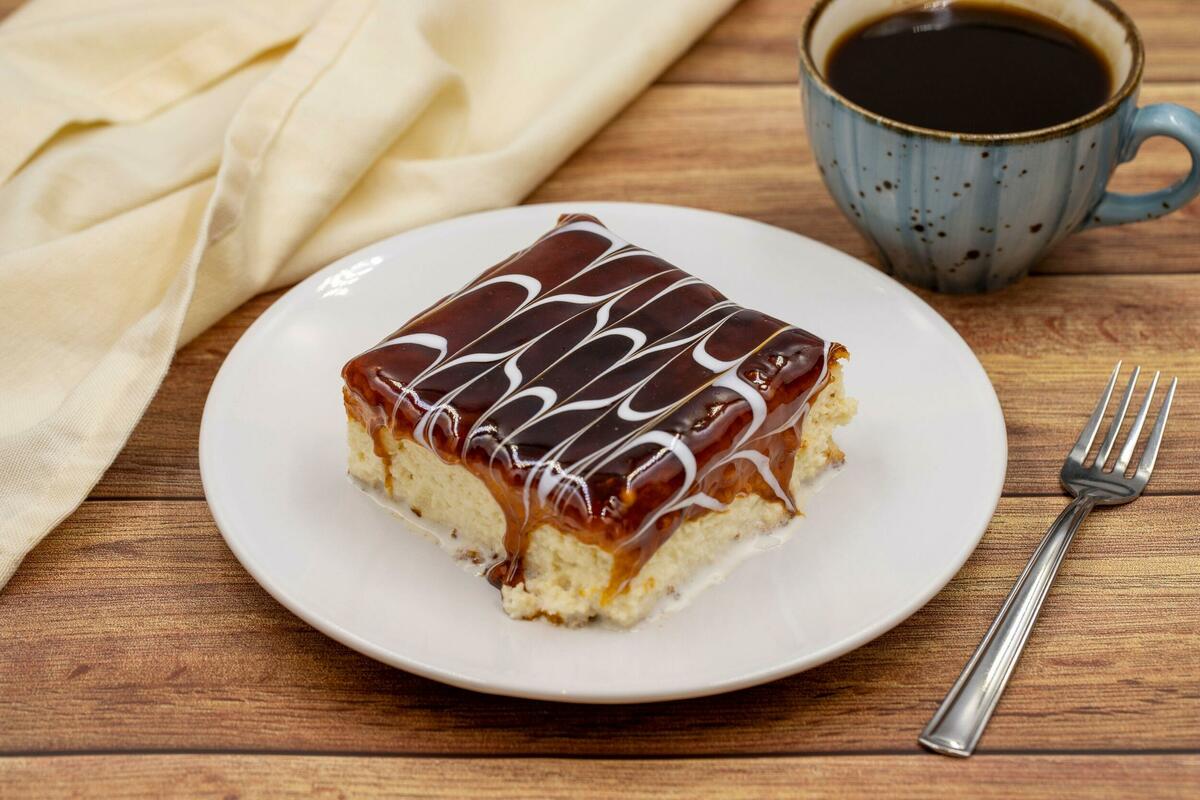 - Napravite preliv tako što ćete mleko, kondenzovano mleko i pavlaku staviti u šerpu da se zagreje. Zatim, čačkalicom izbockajte biskvit, kako bi preliv lepo ušao u koru. Mleko koje je pred ključanjem sklonite sa ringle. Biskvit prelijte vrućim mlekom. Ostavite da biskvit dobro upije mleko pa se ohladi. Nakon toga prelijte karamel preko kolača. Ohladite i služite.
