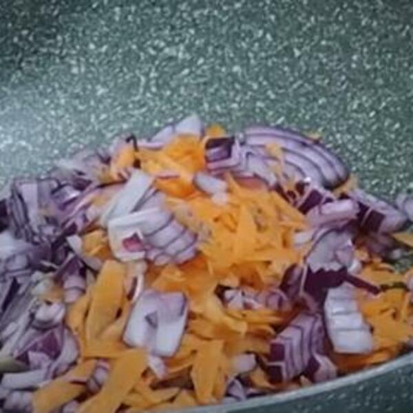 Priprema: Iseckajte crni luk, pa ga prodinstajte na ulju. Dodajte rendanu šargarepu i paradajz sos. Dodajte i prokuvan integralni pirinač. Dodajte i pola kg pilećeg mlevenog mesa.