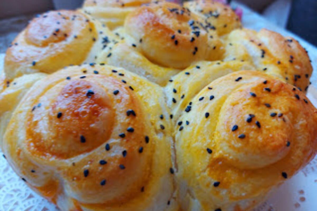 U toplo mleko stavite suvi kvasac i šećer. Promešajte i ostavite 5 minuta. Nakon toga dodajte ulje, 2 jajeta, jedno belance, so i brašnom zamesite testo. Pokrijte i ostavite 30-45 minuta.