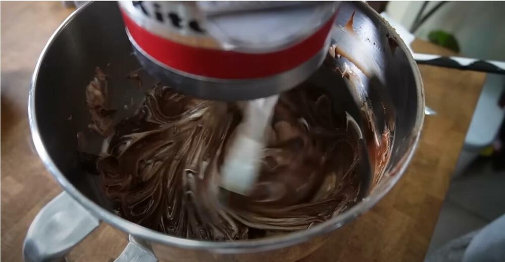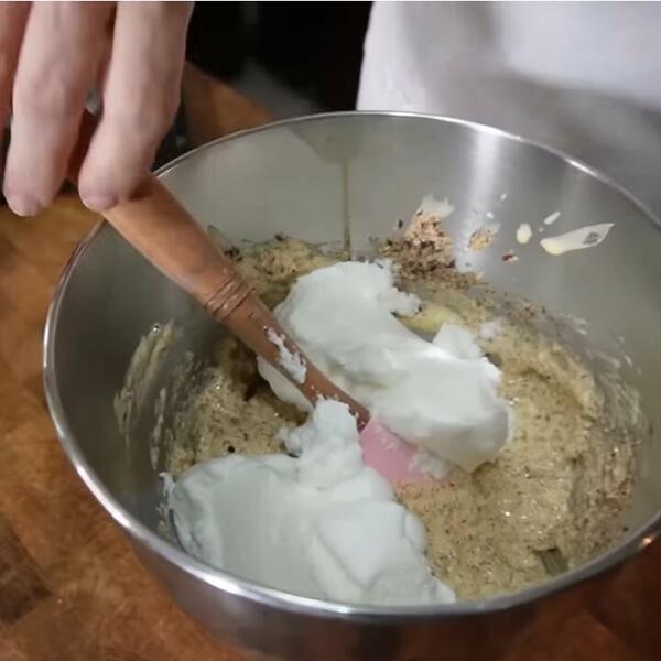 4. Puter umutiti dobro dodati fil sa cokoladom i pudingom i sve dobro sjediniti. Dodati 4 kasike mlevenih lesnika.