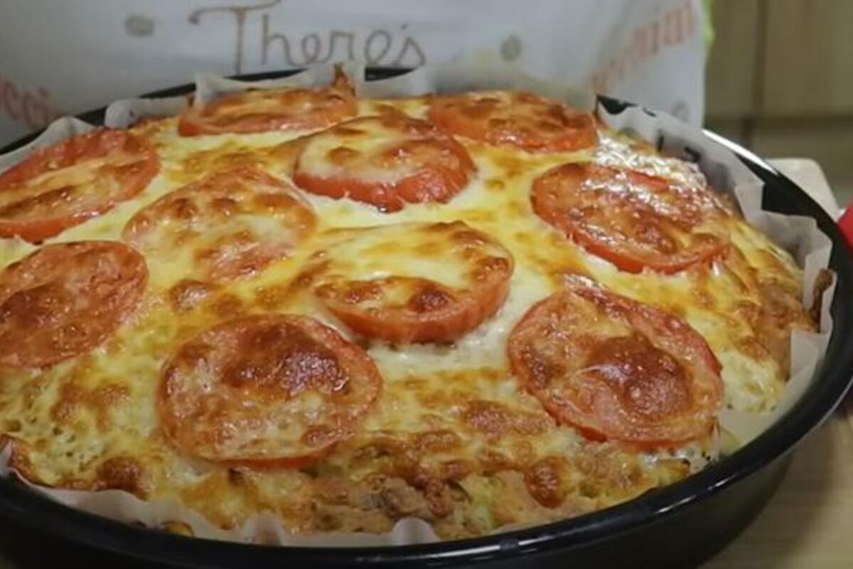 Sve izmešajte i pecite na 200 stepeni Celzijusa oko 30 minuta. Zatim 2 paradajza isecite na kolutove i poređajte po vrhu, izrendajte oko 150 grama sira. Vratite u rernu još 10 minuta.